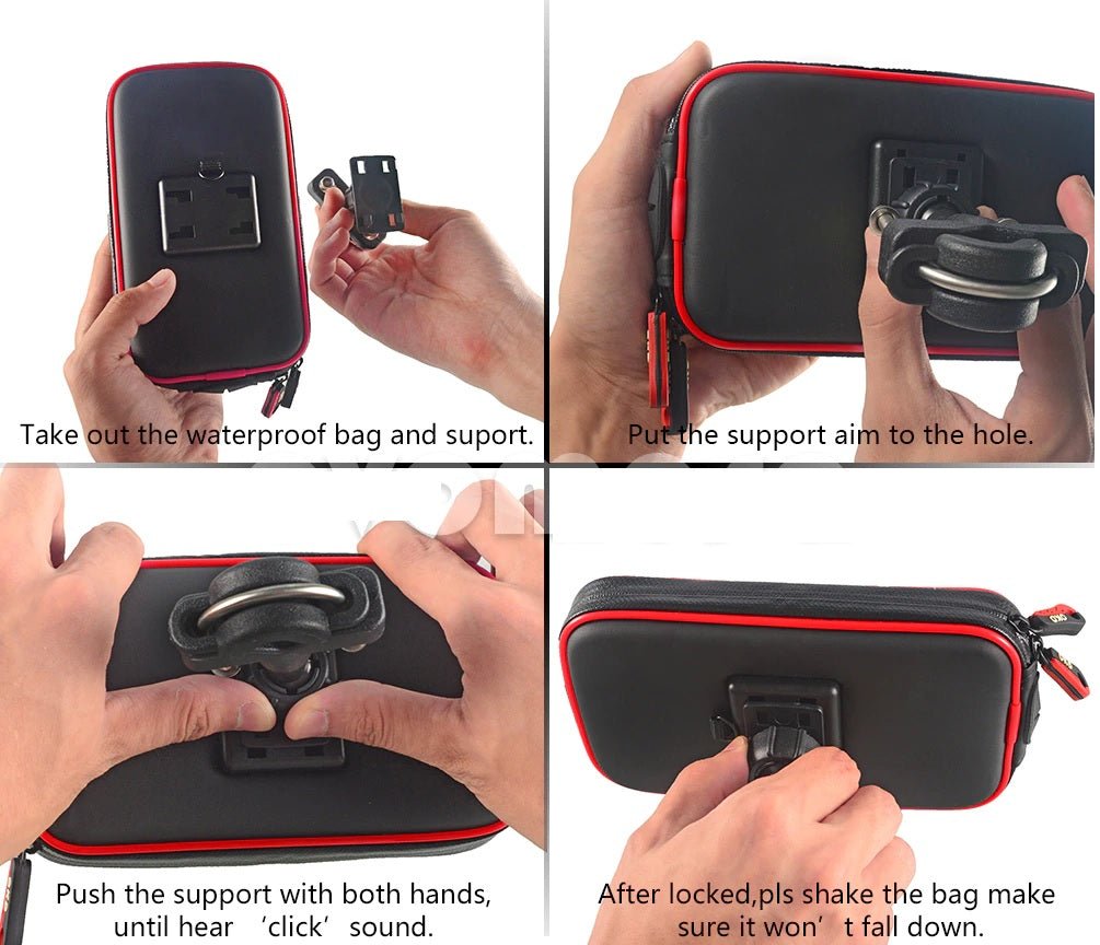 The package includes: 1* mobile phone waterproof bag The bicycle bag is made of carbon fiber composite PU material and is waterproof.