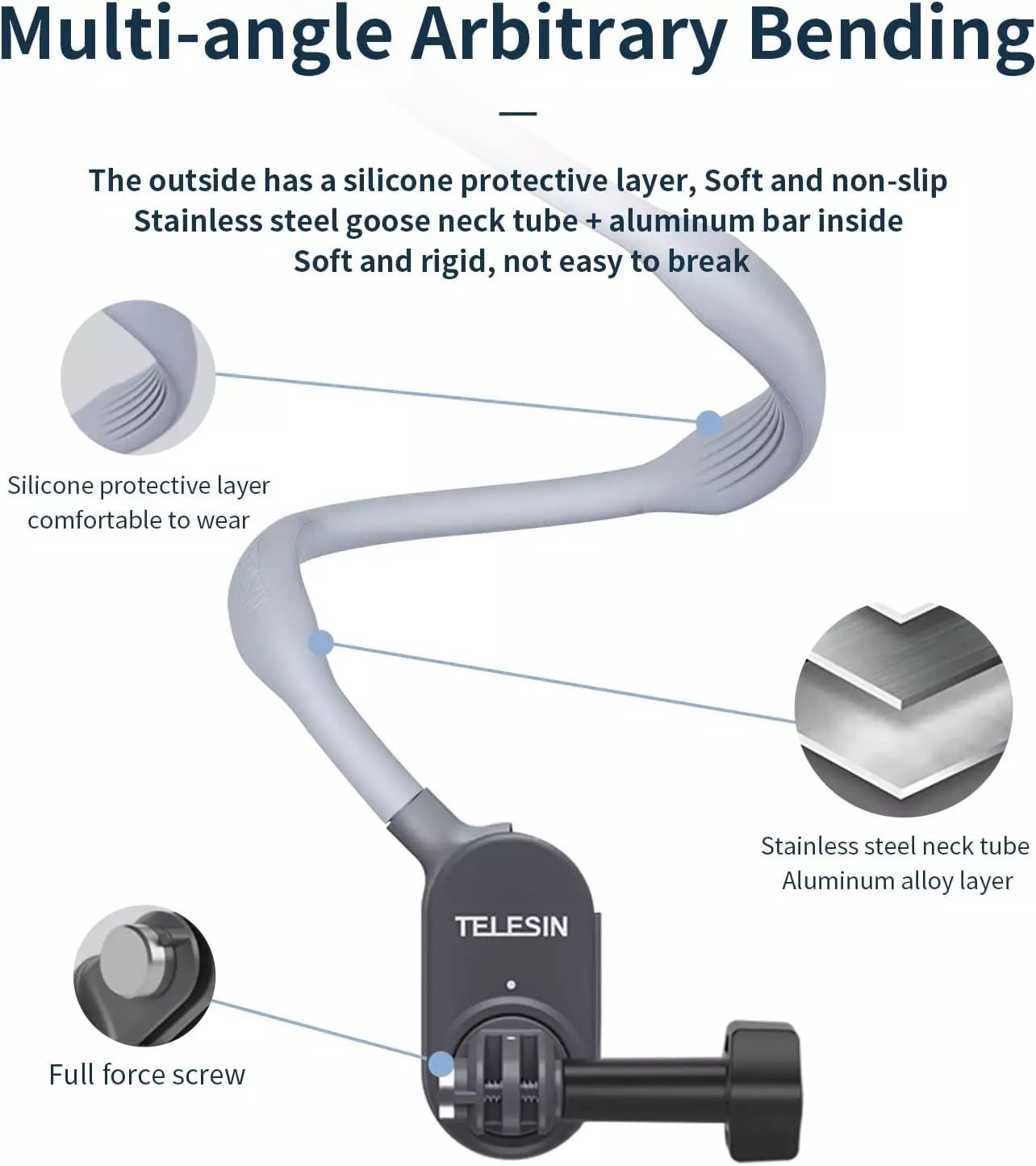 【Magnetic Lock/Unlock Design】TELESIN used magnetic connecting technique on this creative neck mount, say goodbye to the tedious installation and disassembly process, just one step to lock and one step to release!