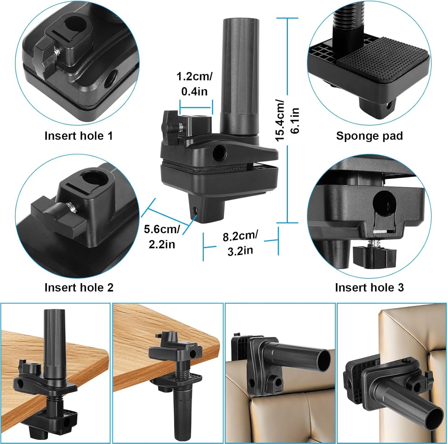 Features: Offers 360° rotation and multiple adjustable joints for flexible positioning, along with a sturdy clamp for attachment to surfaces up to 8cm thick.